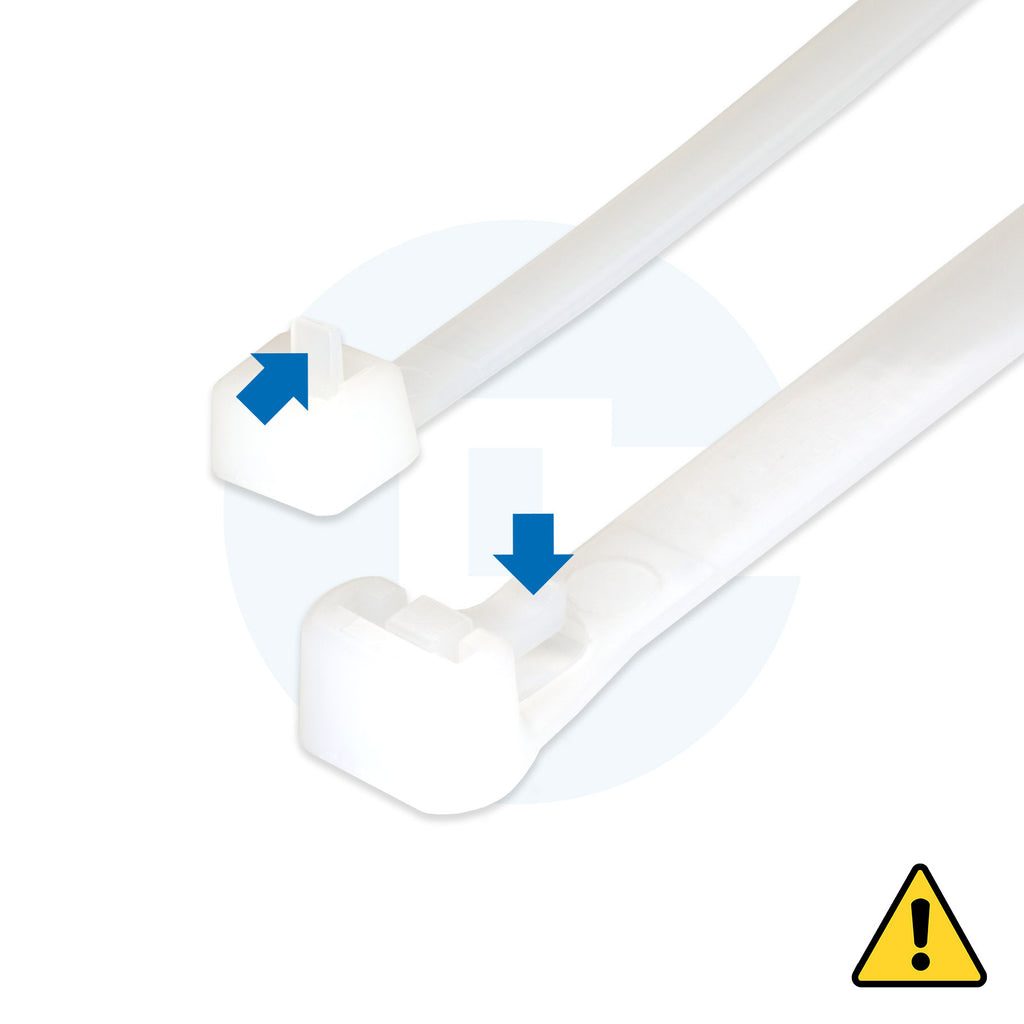 Opakovaně použitelné stahovací pásky s uvolněním spouště jsou extrémně rychlé a lze je uvolnit rukou pomocí spouště na stahovací pásku. Kabelové stahovací pásky s prodlouženým zubem se naproti tomu podobají spíše standardním kabelovým stahovacím páskám (s prodlouženým zubem) a jejich uvolnění vyžaduje, aby se menší výstupek držící kabelovou stahovací pásku stiskl něčím, jako je plochý šroubovák.