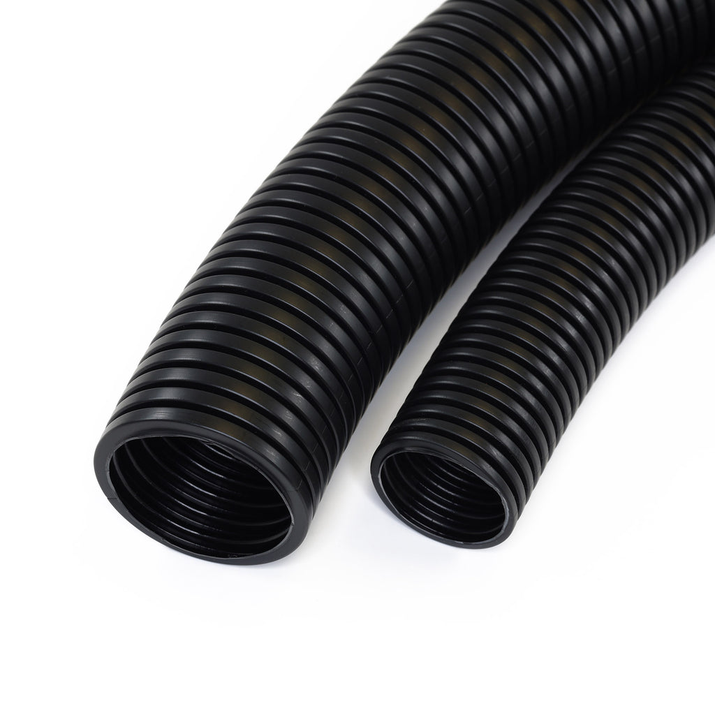 Flexibele zwarte polypropyleen beschermslang voor het bundelen en beschermen van kabels. Ideaal voor kabelassemblages, bedrading onder vloeren en algemene kabelopruiming. / Materiaal: Polypropyleen / Inwendige diameter: 6,5 mm - 35 mm / Uitwendige diameter: 9 mm - 40 mm / Werktemperatuur: -40°C tot 135°C / Kleur: Zwart / Rollengte: 25 m -100 m / Dikte: 0,25 mm - 0,35 mm / Vlamvertragend / RoHS-conform